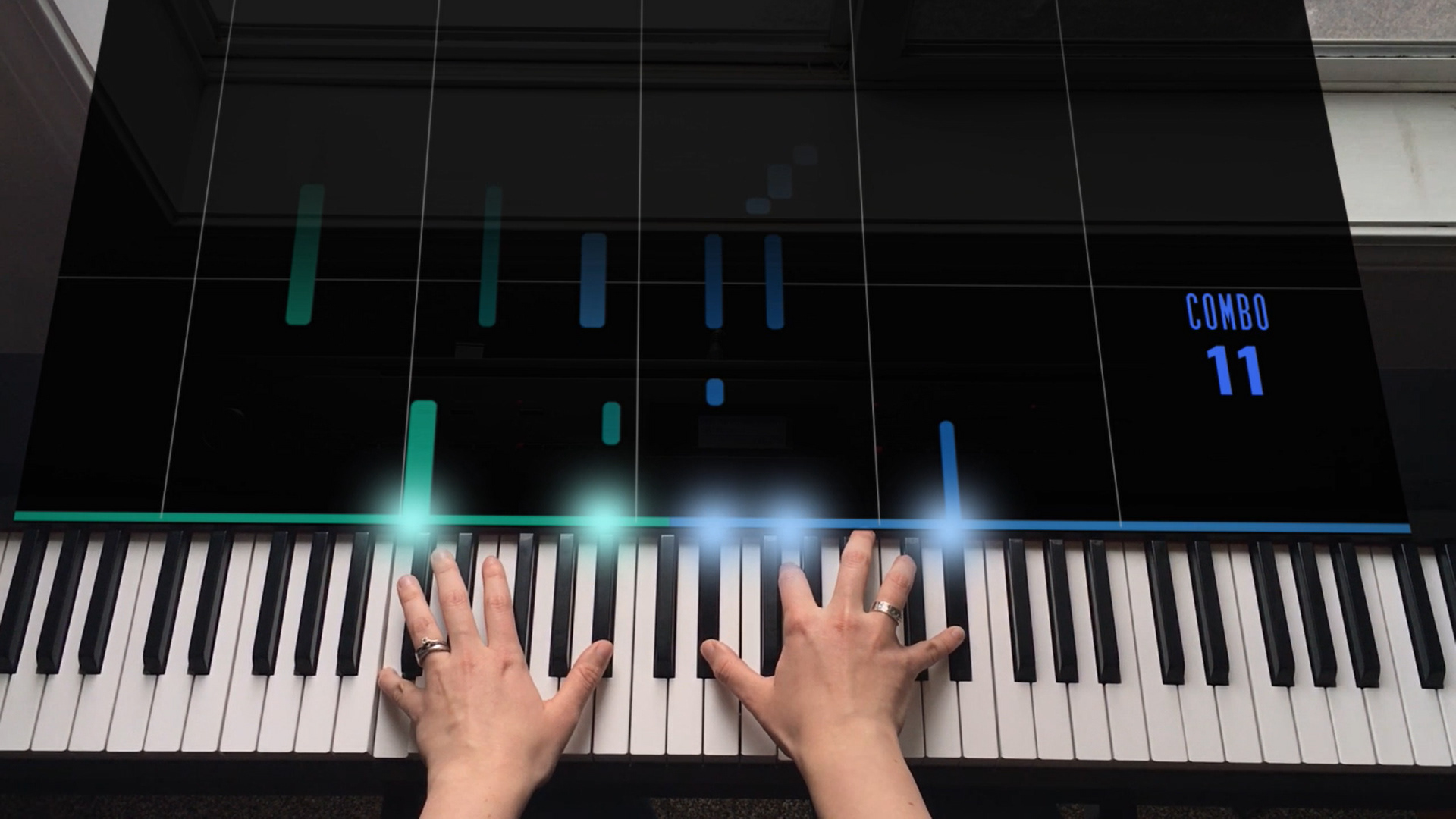 In order to achieve this, the game needed to work over a real piano. Allowing the player to play on their real piano and all the UI would be seen through an AR headset. It had to have real time feedback to the music, with rewards for doing well and visual recognition of missed notes. As well as a list of songs with multiple categories of genres. And, of course, a report card showing how well the player did on the song.