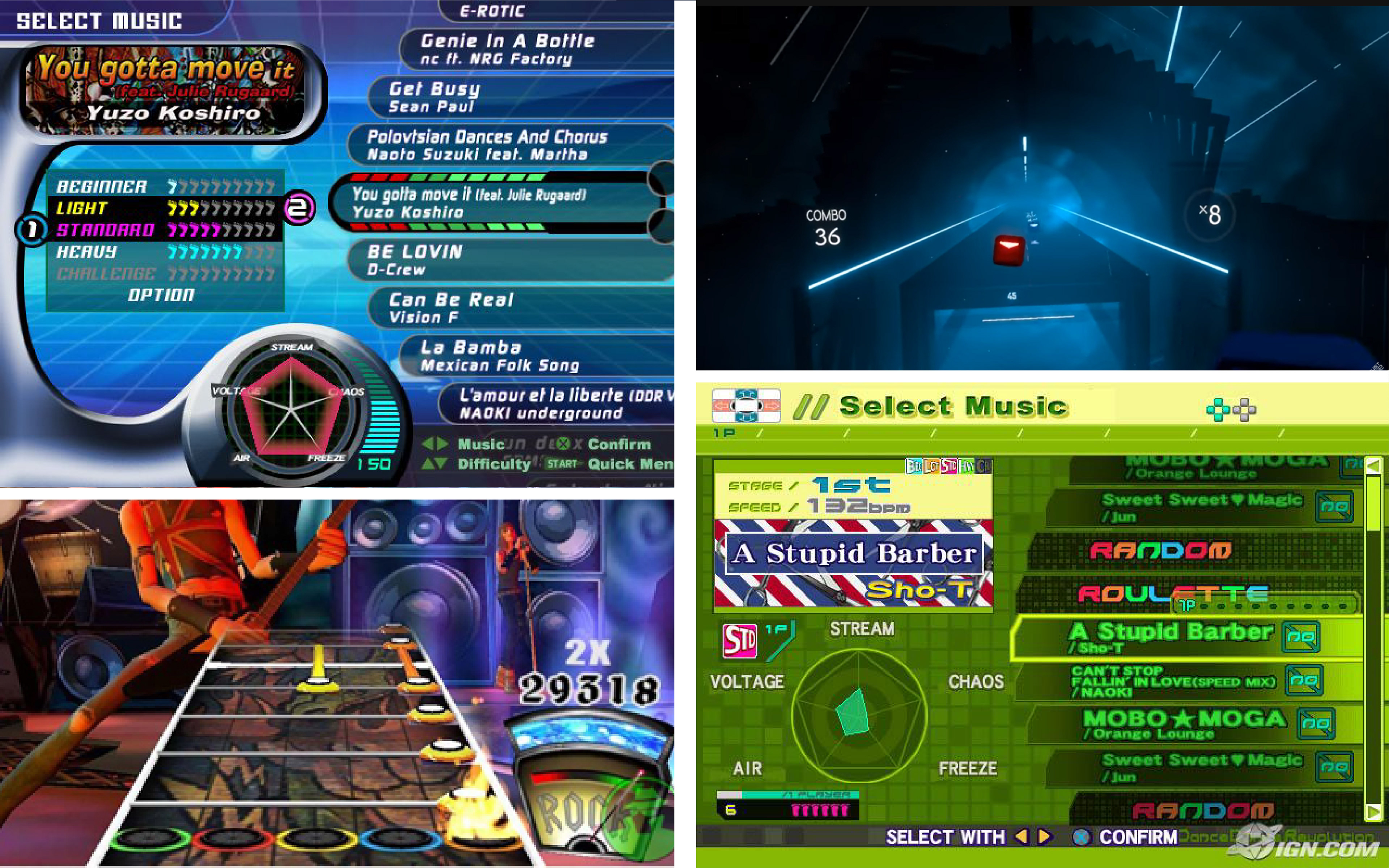 As rhythm games have been made for a while now, I looked to how others have made their games for inspiration. Below is a few of images I drew inspiration from in creating this AR mock-up.