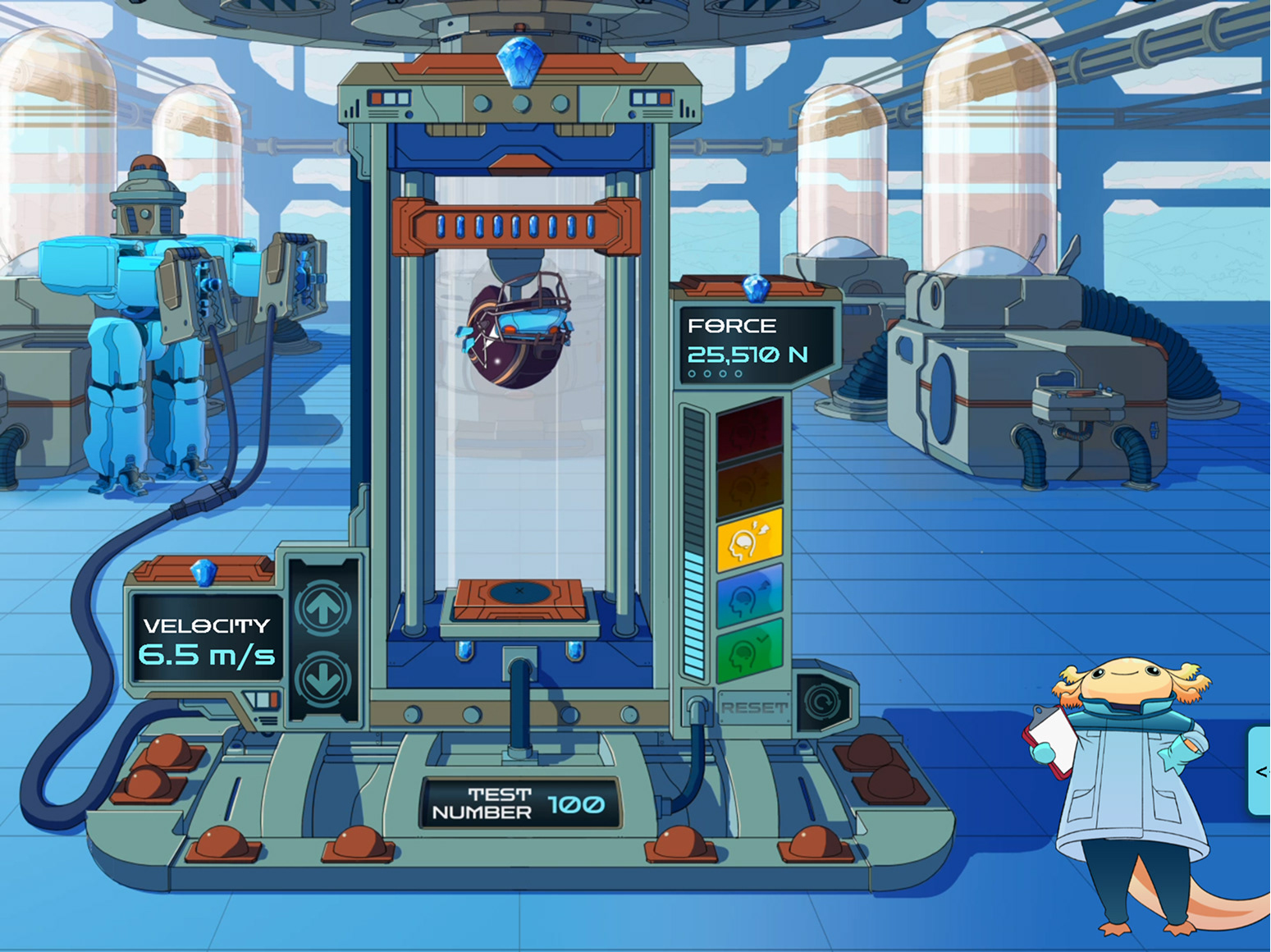 The cranium crusher was the main simulation piece of the course, where the student got to do multi-impact tests on helmets. It had a lot of moving parts, as it had its UI elements where the user would interact, but also had motion elements where it would be animated by an animator in After Effects. The production of this prop was a fantastic group effort between me as the UI designer, a 2D illustrator, an animator, and the sound engineer.