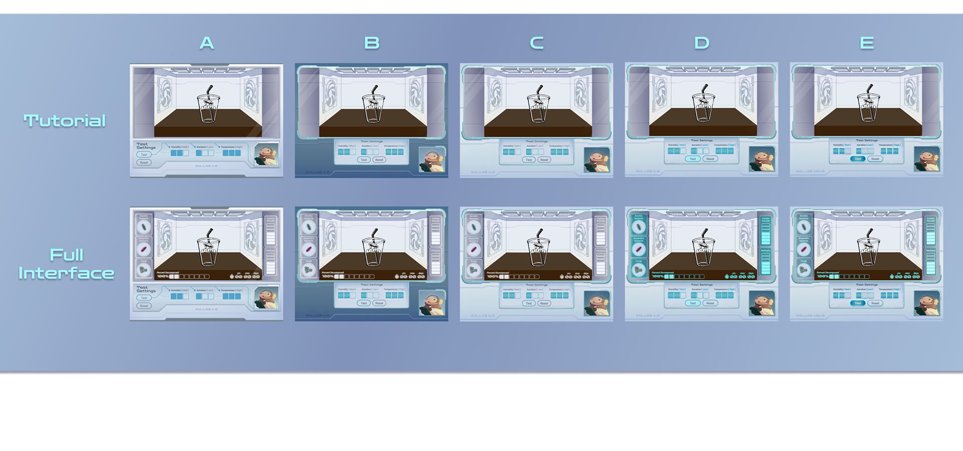 I designed the main interaction interface for this set piece. This is essentially a laboratory simulation where students manipulate environmental factors and observe the results in real-time.